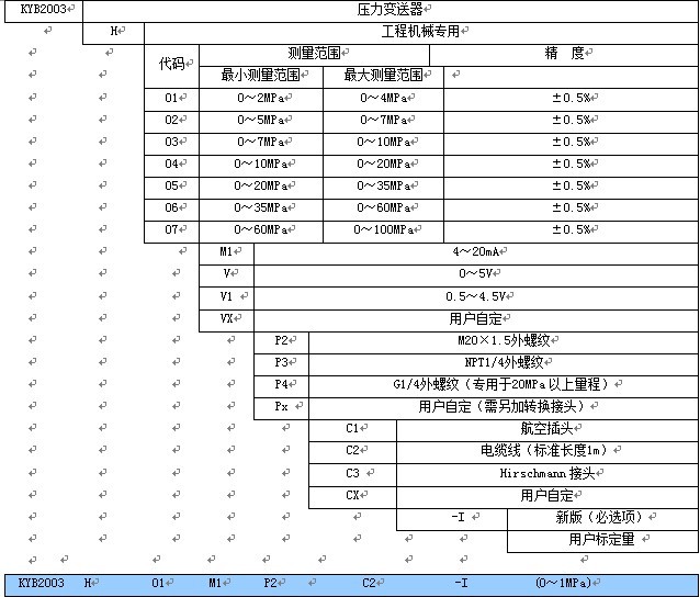 KYB2003H工程機械專用壓力變送器引進國外MEMS最新技術研發的一種新型壓力變送器,具有高過載、耐沖擊、穩定性好等特點。是針對路面工程機械的惡劣環境而研制的專用型產品。本產品特別適合應用于液壓油缸大壓力的測量。