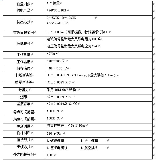 HDM-F系列磁致伸縮液位傳感器采用磁致伸縮原理制造的高精度、長量程線性、絕對位置測量的液位傳感器,可以精確測量容罐液面的位置。供電方式靈活,接線方法多種且極為方便,可滿足各種測量、控制、檢測的要求;采用非接觸測量方式,解決了因磨擦、磨損等造成的使用壽命低的問題。該傳感器性能高,壽命長,有良好的環境適應性、可靠性和穩定性,安裝簡單,為用戶使用帶來極大的方便。